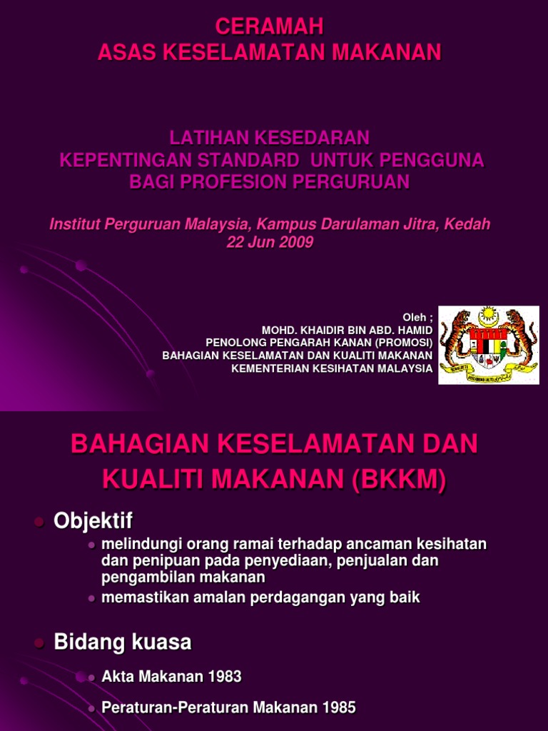 Unit Keselamatan Dan Kualiti Makanan - Keselamatan dan kesehatan kerja merupakan suatu pemikiran dan upaya untuk menjamin keutuhan dan kesempurnaan baik jasmani maupun rohani.. Explore tweets of bahagian keselamatan dan kualiti makanan @bkkmputrajaya on twitter. Diari aku di unit keselamatan dan kualiti makanan pejabat kesihatan daerah kota setar. Jangan simpan makanan yang dimasak lebih daripada 2 jam pada suhu bilik.iv. Simpan makanan dalam bekas yang tertutup.vi. Anda beli makanan dan terima makanan yang dah rosak atau kotor?